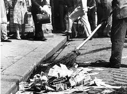 A pesar de todo lo que se pueda creer, el efectivo es escaso, muy, muy escaso. Todo el “dinero” del mundo se basa en crédito. Esto es, todos tenemos dinero, pero también todos se lo debemos a alguien (una forma de decirlo). Entonces, para que exista inflación tiene que suceder que mucho dinero vaya en búsqueda de menos bienes o servicios reales, es decir, gente pidiendo crédito a cuenta de su trabajo en el futuro. Pero eso es un animal diferente de la hiperinflación. Esta se produce cuando nadie quiere el dinero “legal” aka crédito o notas de deuda. Por si el mundo se olvida, quien emite dinero es el banco central de un país, que en el caso del USD es la FED, sucursal de los bancos privados, USA y Europeos. Para que exista hiperinflación, los banqueros tendrían que estar de acuerdo en que las deudas les fueran pagadas con papel confeti, porque ellos son los que compran la deuda de un país, sea directamente mediante los primary dealers o vía el mismo banco central. Pues bien, eso NO va a pasar. Algo que no expira son las deudas, pero una hiperinflación liberaría en términos prácticos al mundo de ella. Lo que va a pasar (si es que algo sucede) es una mega deflación, con lo bancos exigiendo dinero (que no existirá) o en su defecto esas maravillosas barras de metal dorado o plateado que en ese instante valdrían hongo, como todo el resto de las cosas salvo el efectivo. Tal vez algún destacado abogado economista tenga una visión diferente porque el oro is the shit¡¡¡, todo en papel vale hongo¡¡¡ y sólo el dinero “honesto” es el que va a triunfar¡¡¡¡…JAJAJA, eso requeriría de gobiernos honestos y que estén dispuestos a pagar sus deuda, que como quedó demostrado con Grecia, Argentina y pronto Japón y todo Europa, no es el caso. Not gonna happen boy…